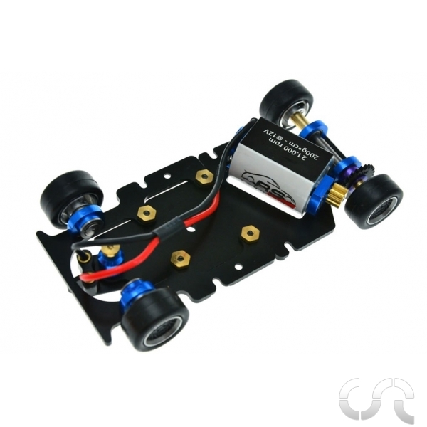 | Description: | Ford Escort Mk1 N°69 ayant participé à la " Portuguese Classic Car Championship ". - Moteur cage courte anglewinder vissé sur son support, 21000 t/mn-couple: 200 gr /cm (RS-211) - Pignon en laiton: 9 dents (RS232) - Couronne: 24 dents, moyeu aluminium vissé (RS227) - Axes: diamètre 3 mm, longueur: 46mm - Les axes avants et arrières sont montés sur roulements à billes - Support du moteur et supports d'axes avants et arrières en aluminium vissés. - Châssis métal en 2 parties - Possibilité de régler le jeu entre les 2 parties - Bagues de jeu latéral d'axe en laiton - 2 jantes arrières en aluminium vissées sans relief central mais avec rebords latéraux diamètre: 16.5/14.8 x 10.5/8.3 mm (référence : RS218) - 2 jantes avants en aluminium vissées sans relief central mais avec rebords latéraux diamètre: 16.5/14.8 x 9.3/8 mm (référence RS218) - 2 pneus arrières 21.5 x 11.5 mm, 30 shore (référence RS217) - 2 pneus avants 20 x 9.3 mm (référence: RS216) - Puits de guide en aluminium - Guide piste vissé muni d'un ressort dans l'axe La Ford Escort Mk1 pilotée par Romulo Mineiro, arborant le numéro 69, a participé au Portuguese Classic Car Championship, une compétition dédiée aux voitures historiques et classiques. Le modèle Ford Escort Mk1 est une icône dans le monde des courses automobiles classiques, particulièrement apprécié pour sa robustesse et ses performances dans les rallyes et circuits de l'époque. Romulo Mineiro, bien connu dans les circuits classiques, a couru avec cette voiture dans plusieurs événements au Portugal, montrant la résilience et l'ingéniosité de ce modèle. |
