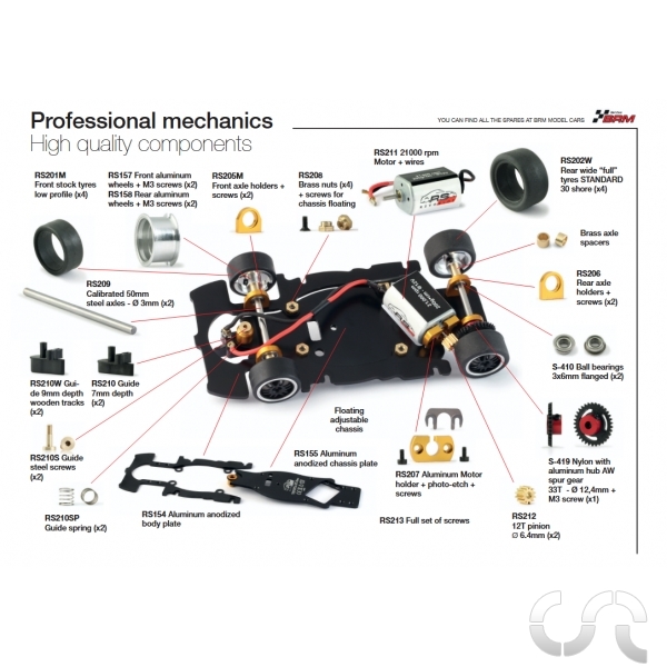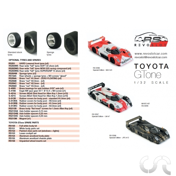 | Description: | Toyota GT-One Revoslot by BRM " Marlboro Spéciale edition " N°3. - Moteur cage courte (21000rpm) en position Anglewinder (RS211). - Support moteur en aluminium - Pignon: 12d (RS212) - Couronne: 33d (S-419) - Châssis réglable en aluminium flotant avec pièces mécaniques de précision BRM. - Écrous en laiton pour fixer le châssis - Carrosserie en plastique injecté Revo Slot. - Entretoises d’axe en laiton - Support d'axes en aluminium - Jantes avant et arrière en aluminium avec vis M3 - Pneus arrière haute adhérence (RS202W) - Pneus avant à profil bas (RS201M) - Guide: Longueur standard et guide profond supplémentaire inclus dans la boite - Axes AV + AR calibrés de 3mm avec entretoises pour axes en laiton - Axes AV/AR de 50mm - Roulements à billes AV/AR |