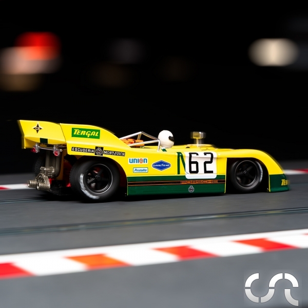 Description: | Porsche 908/3 N°62 " Daytona 1972 ". - Moteur Shark 21900rpm (164gr/cm) en position Sidewinder (NSR3041) - Nouveaux paliers et support moteur (NSR1270) - Nouveau Pignon de 11d métal de 6.45 de diamètre (NSR6911A) - Couronne 32d (NSR6032) - Nouvelles vis de fixation moteur (NSR4856) - Pneus AV : 18.5 x 10 référence NSR5238 - Pneus AR : 21 x11 référence NSR5241 - Jantes AV Aluminium de 16″ (NSR5001) - Jantes AR Aluminium "Air system" de 16' (NSR5002) - Axes AV/AR: (NSR4801) - Guide: NSR4841 - Poids: 67gr - Entièrement équipée des pièces détachées de compétition de la marque |