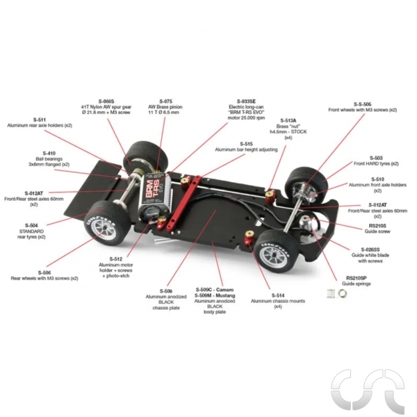 | Description: | Chevrolet Camaro Z28 N°7 (Wolverine Trans-Am Michigan 1969), engagé par l'écurie " Todco Racing ". Résultat: 8ème. - Moteur anglewinder , cage longue , 25000 t/mn , 325 gr/cm , vissé sur ses faces avant et arrière (S-033S) - Couronne 38 dents , moyeu en aluminium , vissée (S-067S) - Pignon 11 dents , en laiton (S-075) - Châssis en aluminium anodisé en 2 parties - Possibilité de régler le jeu entre les 2 parties - Supports du moteur et supports d'axe avant et arrière , en aluminium , vissés - Axes pleins de 3 mm de diamètre , longueur 60 mm - Axe arrière reposant sur 2 roulements à billes intégrés à des supports en aluminium - Axe avant reposant sur 2 roulements à billes intégrés à des supports en aluminium - 2 jantes arrières en aluminium: S-506 - 2 jantes avants en aluminium: S-505 - 2 pneus arrières: S-504 - 2 pneus avants: S-503 - Puits de guide en aluminium - Guide piste vissé avec ressort dans l'axe (S-026SS) - Carrosserie vissée sur le châssis en 4 points avec inserts métal - Poids: 190g Le 11 mai 1969, lors de la course Trans-Am au Michigan International Speedway, Craig Fisher a piloté la Chevrolet Camaro Z28 n°7 de l'équipe Todco Racing, terminant à la 8ᵉ place. Cette performance a contribué au classement général de l'équipe dans le championnat Trans-Am de cette année-là. Les vis M3 , des jantes , de la couronne et des supports moteur , nécessitent une clé Allen ou un tournevis avec un embout Allen de 1.5 mm Véhicule à l'échelle 1/24ème |