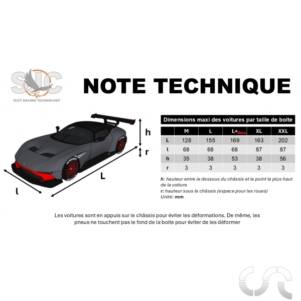 Ensemble complet boite pour voiture et boite de rangement complets. Idéal pour les toutes voitures 1:32 (Rallye, GT, Gr5, GrC….) Les boîtes pour voitures de la Série 7 ont été conçues pour offrir une protection optimale à vos modèles, tout en maximisant l’espace de rangement. Elles s’adaptent à toutes les dimensions de voiture. Grâce à un système de tendeurs réglables, elles assurent un maintien parfait du véhicule, aussi bien en longueur qu’en hauteur. Le capot transparent met en valeur votre voiture tout en facilitant son identification et sa gestion. Les boîtes Série 7 allient élégance, protection et efficacité. Que ce soit pour la compétition ou pour sublimer votre collection, elles vous libèrent des contraintes de rangement, pour que vous puissiez vous concentrer pleinement sur la course… ou sur le plaisir des yeux. |