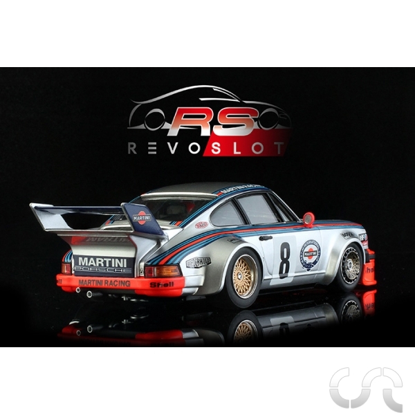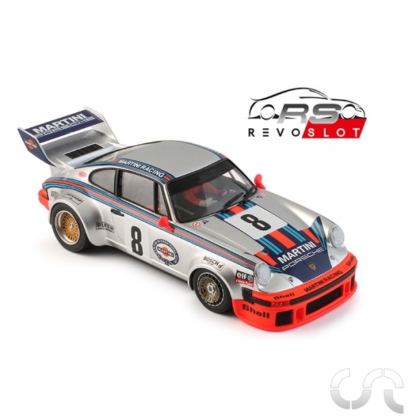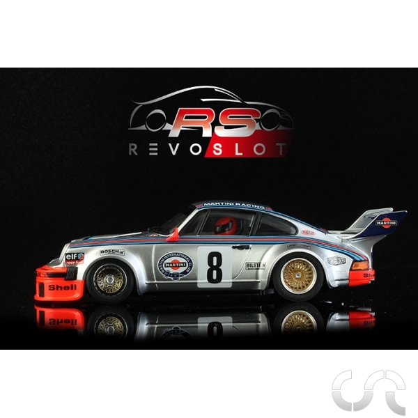 | Description: | Porsche 934 " Martini Racing " N°8. - Moteur: 21 000 tr / min (12 V) (RS211) - Support moteur en position anglewinder - Châssis métallique (aluminium) sans aimant en 2 parties dont support du moteur - Châssis réglable de manière flexible - Ecrous en laiton pour fixer le support sur le châssis - Roulement à billes (avant + arrière) (S-410) - Couronne : 24 dents (RS227) - Pignon : 9 dents (RS232) - Axe AR en acier trempé avec Ø3mm (Longueur 50mm) (RS209) - Supports d’axes AV et AR en alu - Entretoises (cales) d’axe en laiton - Jantes AR en aluminium (réf RS253) - Jantes AV en Aluminium (réf RS252) - Pneus arrière: 21.5 x 10.5 shore 30 (réf RS251) - Pneus avant: 19.5 x 8.3 (réf RS250) - Puits de guide en aluminium - Guide piste vissé (RS210) |
