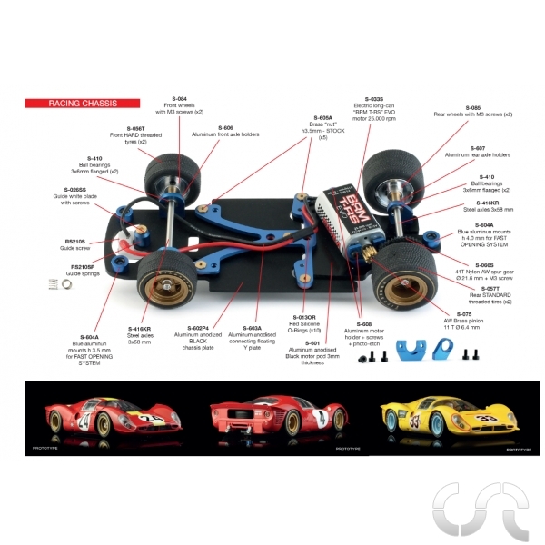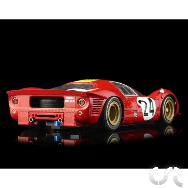 | Description: | Ferrari 330 P4 N°4 ayant participé aux 24h du Mans en 1967, engagé par l'écurie " Équipe Nationale Belge ". Résultat: 3ème. - Châssis en aluminium anodisé (épaisseur 3mm) - Moteur "BRM BLUE" 25000rpm (BRMS-033S) en position Anglewinder - Roulements à bille sur essieu arrière - Roues en aluminium et porte-essieux -,Pneus AR (S-057T) - Pneus AV (S-056T) - Couronne 41d (S-066S) - Pignon laiton 11d (S-075) - Axes 3mm Véhicule à l'échelle 1/24ème La Ferrari 330 P4, arborant le numéro 24 et engagée par l'Équipe Nationale Belge, a terminé à la troisième place des 24 Heures du Mans 1967. Pilotée par les Belges Willy Mairesse et Jean Blaton (connu sous le pseudonyme "Beurlys"), la voiture a bouclé 377 tours, soit 11 de moins que la Ford GT40 Mk.IV victorieuse. Ce résultat a contribué à la performance notable de Ferrari cette année-là, avec une deuxième place pour une autre 330 P4, renforçant la rivalité intense entre Ferrari et Ford durant cette période. |