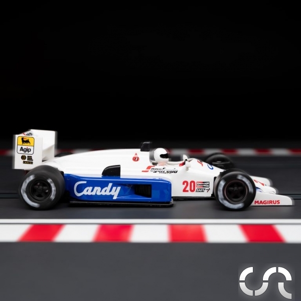 | Description: | Formula 86/89 "Toleman Candy - JC Livery " N°20. - Moteur NSR 3023 – KING 21 EVO/3 21400 rpm – 350 g.cm @ 12V Effet Magnétique – Moteur cage longue avec effet magnétique pour améliorer la tenue de route. - Support moteur Inline avec cinq points de fixation (Possibilité de rajouter des suspensions) - Chassis : Evo spécifique au modèle. Deux points de fixation pour la carrosserie. - Pignon 7010 – 10 dents inline - Couronne 6327AL – 27 dents – Moyeu aluminium - Jantes arrière: 13×10 – option (13×13 – 13×13) - Jantes avant: 13×8 - Pneus arrière: 19,5×13 NSR5284 - Pneus avant: 18×10 NSR5283 - Hauteur de l'essieu avant peut être réglée à l'aide des vis NSR. - Les vis M2.5 des roues et de la couronne nécessitent une clé Allen ou un tournevis avec un embout Allen de 1.3 mm. - Dernier détail, le poids de la carrosserie est très léger seulement 12gr. - Poids: 73gr Véhicule entièrement équipée des pièces détachées de compétition de la marque