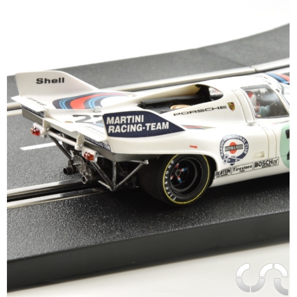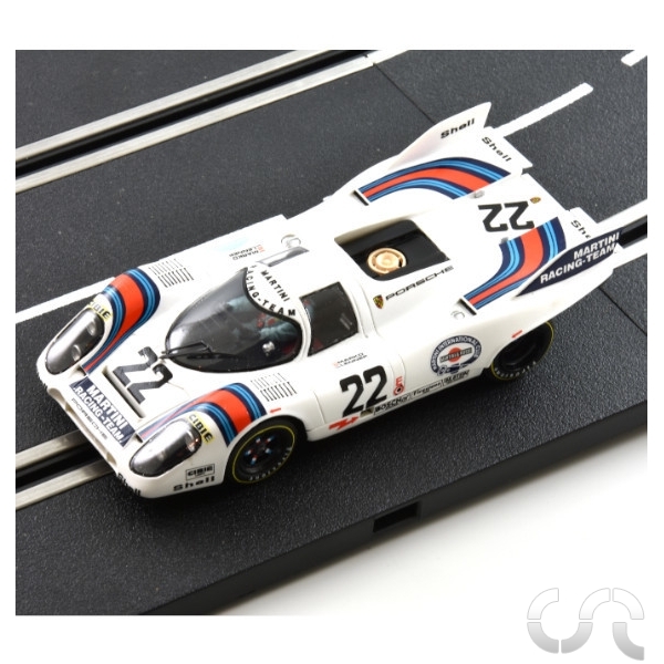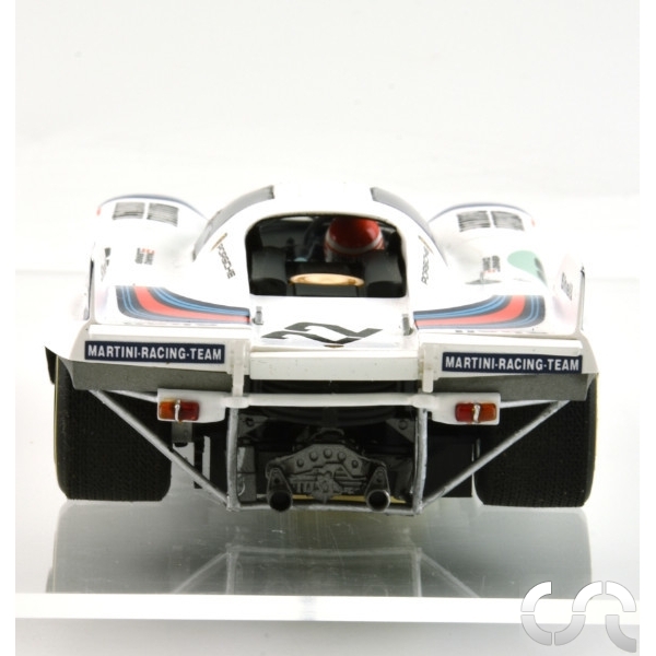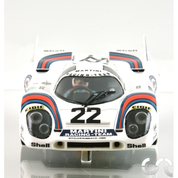 | Description: | Porsche 917K N°19 ayant Remporté les 24h du Mans en 1971, engagé par l'écurie "Martini Racing Team". - Carrosserie en résine polyuréthane - Châssis en ABS injecté - Moteur en position Sidewinder - 4 jantes aluminium - Axes 3/32 Modèle artisanal en résine, en version RTR (tout monté). Reproduction au 1/32ème en version slot racing (équipée d'un moteur 12V pour rouler sur un circuit) de la Porsche 917K n°22 qui a remporté les 24 Heures du Mans en 1971. La carrosserie de cette reproduction est moulée en résine polyuréthane. Le châssis est injecté en ABS. Les roues arrière sont en métal. Le train avant est réglable. Il est possible de digitaliser ce modèle en installant une puce dans l'habitacle. |
