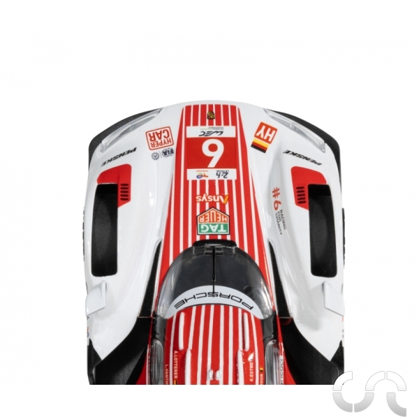 | Description: | Porsche 963 N°6 ayant participé aux 24h du Mans en 2024 ", engagé par l'écurie "Porsche Penske Motorsport (D)". Résultat: 4ème. - Eclairage: Feux avant et arrière - Châssis plat - Moteur cage courte inline - Pignon en nylon: 9 dents - Couronne en plastique: 27 dents - Axes diamètre: 2.31 mm, longueur 50 mm - Axe arrière monté sur paliers plastique - 2 jantes arrières en plastique diamètre :17.7/15.7 x 10.7 mm - 2 jantes avants en plastique diamètre:17.7/15.7 x 10.7 mm - 2 pneus arrières lisses, mesures CDL sur jante: 21 x 10 mm - 2 pneus avants lisses, mesures CDL sur jante: 21 x 10 mm - 1 aimant au néodymium plat rectangulaire placé sous le pignon dimensions: 24 x 8 x 2.5 mm - Guide vissé - "easy fit guide": tresses montées sur une plaquette interchangeable - Poids: 85gr Diditalisation simple grâce à la puce DPR ( C8515 )