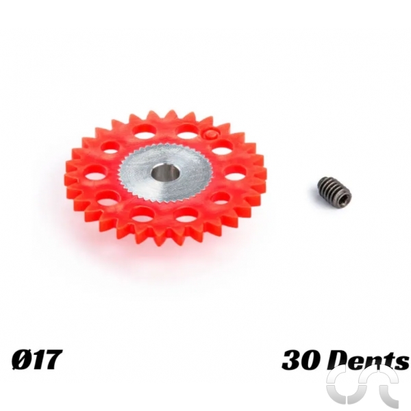 | Description: | Couronne 30 dents en Plastique Allégé X1 - Diamètre: 17mm - Pour pignon de Ø 7.5mm - Pour moteur en position Sidewinder (transversal) - Pour Axe de 2.38mm (3/32) - Insert en Aluminium - Vis M2 x1 Les couronnes sont très légères, concentriques et s’engrènent très facilement avec les pignons Sidewinder de la marque Slot-it. |