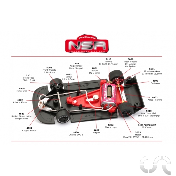 | Description: | Coffret Mosler MT900R "Salvatore Noviello 13th Anniversary " N°64. - Entièrement équipée des pièces détachées de compétition de la marque - Moteur King 21EVO à 21400rpm - 320g/cm (NSR3023) - Couronne Alu / Pignon Bronze: 31x13 - Axe AV/AR: 55mm - Jantes AV Aluminium (NSR5001) - Jantes AR Aluminium (NSR5002) - Pneu AV/AR: 17x8 (NSR5201) / 19.5x12 (NSR5210) - Axe avant réglable - Poids: 69gr Fidèle à la réputation de performance de la Mosler MT900R, cette version est équipée d’un châssis racing conçu pour la compétition. Sa mécanique performante et son équilibre remarquable en font une voiture particulièrement efficace sur piste, que ce soit pour les clubs ou les courses entre amis. NSR présente un coffret spécial commémoratif dédiée à Salvator Noviello à l’occasion du 13ème anniversaire de sa disparition. Le mois de mars reste une période spéciale pour NSR. Cette année ce mois de mars marque déjà le 13ème anniversaire de la disparition de Salvator Noviello. Tous les mois de Mars, depuis son accident, l’équipe NSR rend hommage à son créateur en sortant une Mosler MT 900 R. La Mosler MT900R était la voiture préférée de Salvatore Noviello. Cette Mosler MT 900 R à l’échelle 1/32 porte le numéro 64, le dossard de course de Salvatore Noviello.