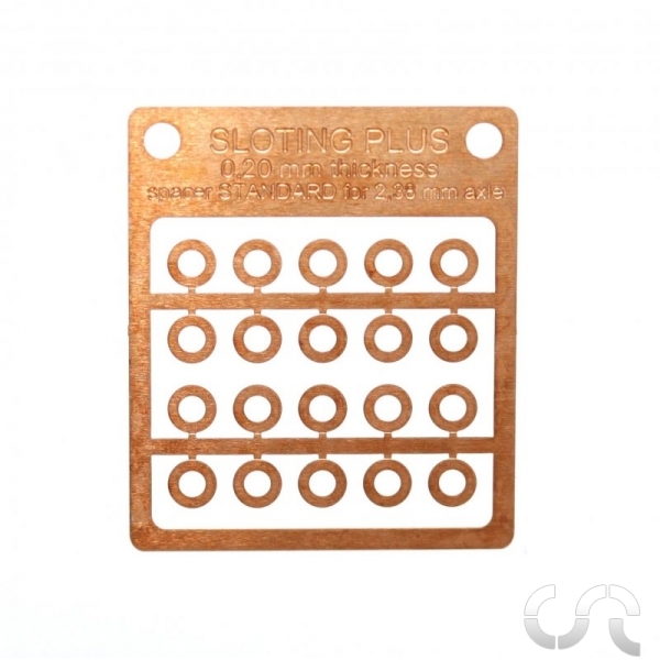 | Description: | Cales d'Axes "STANDARD" x20 - Longueur: 0.20mm - Pour axes de 2.38mm (1/32) - Bronze Cales en bronze pour slot car. Ces entretoise de 0.20mm d’épaisseur Sloting Plus permettent un réglage précis de la tolérance latérale sur les voitures de slot racing à l'échelle 1/32. Contrairement aux séparateurs en acier inoxydable, qui sont pratiquement insensibles à l'usure, les cales en bronze sont fabriquées dans un matériau plus tendre et avec un pourcentage plus élevé d'adaptabilité à l'usure due au frottement.
