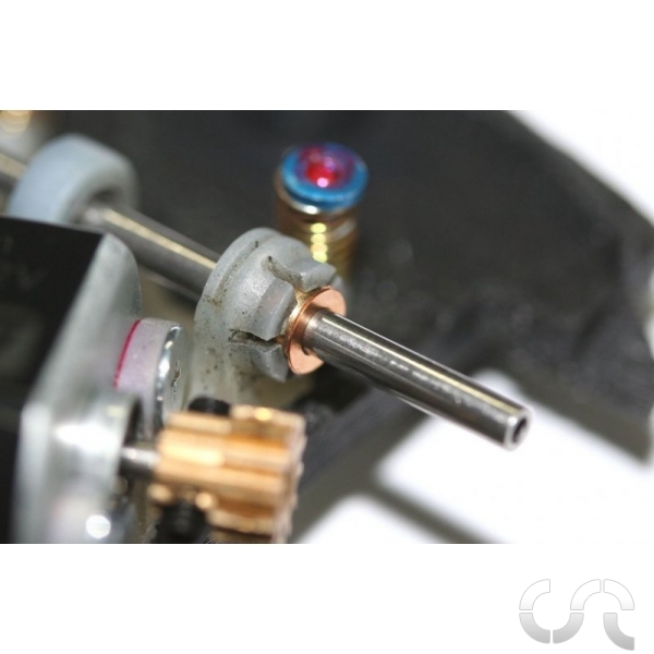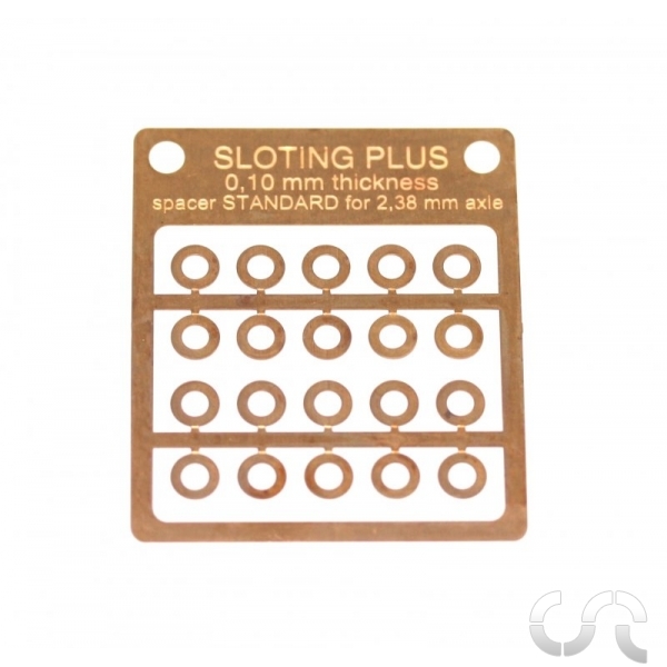 | Description: | Cales d'Axes "STANDARD" x20 - Longueur: 0.10mm - Pour axes de 2.38mm (1/32) - Bronze Cales en bronze pour slot car. Ces entretoise de 0.10mm d’épaisseur Sloting Plus permettent un réglage précis de la tolérance latérale sur les voitures de slot racing à l'échelle 1/32. Contrairement aux séparateurs en acier inoxydable, qui sont pratiquement insensibles à l'usure, les cales en bronze sont fabriquées dans un matériau plus tendre et avec un pourcentage plus élevé d'adaptabilité à l'usure due au frottement.